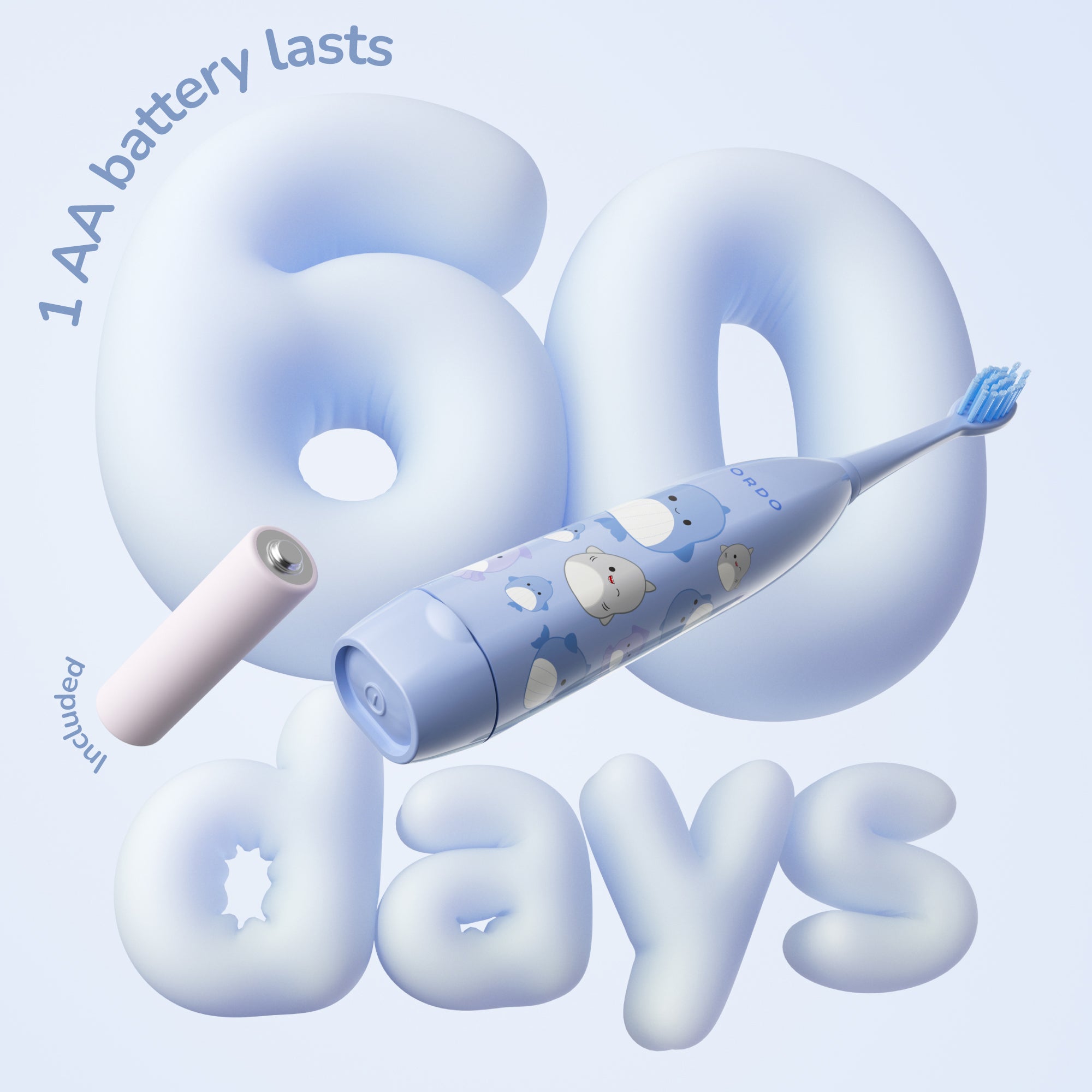The toothbrush can last up to 60 days on a single AA battery, ensuring long-lasting use without frequent recharging.