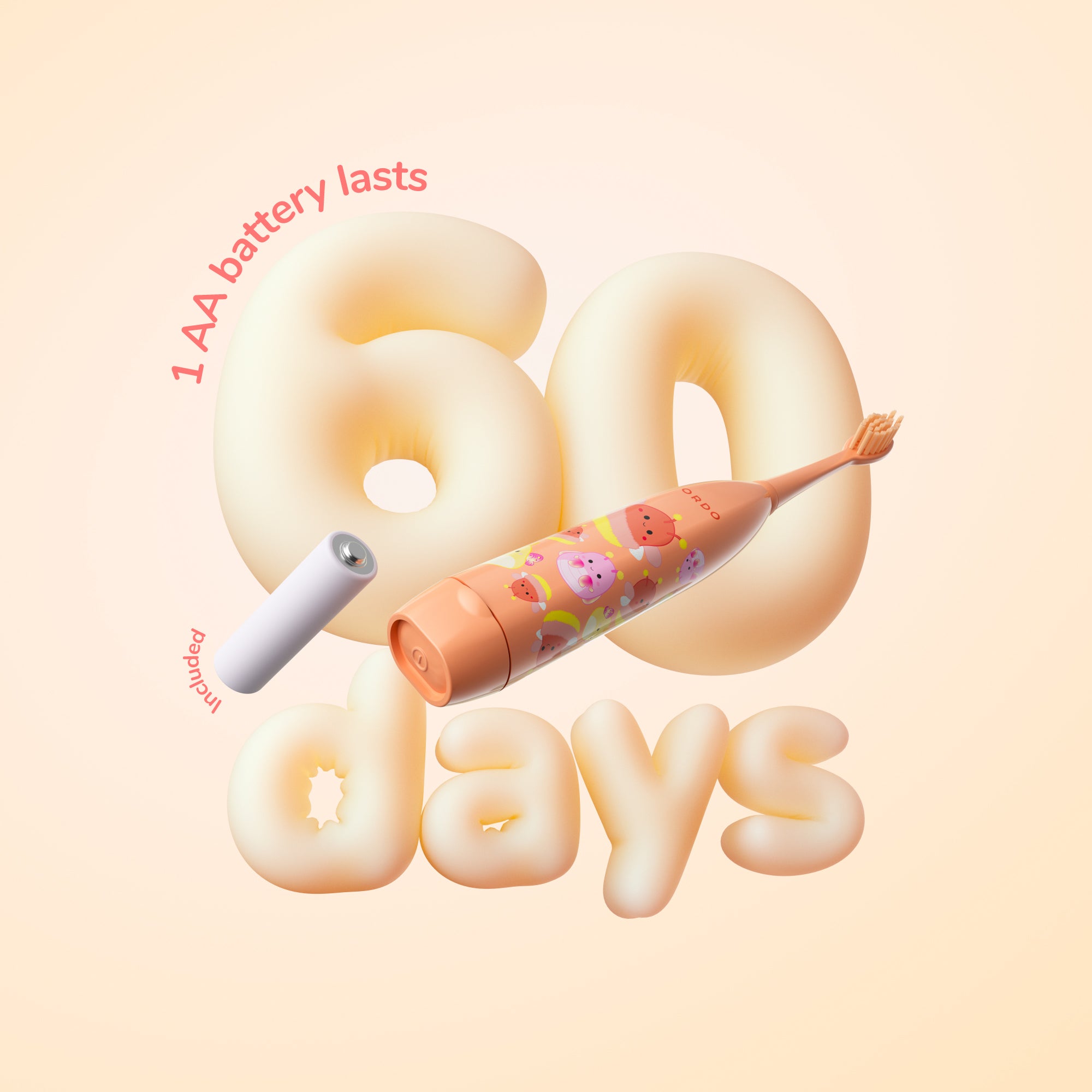 The toothbrush can last up to 60 days on a single AA battery, ensuring long-lasting use without frequent recharging.