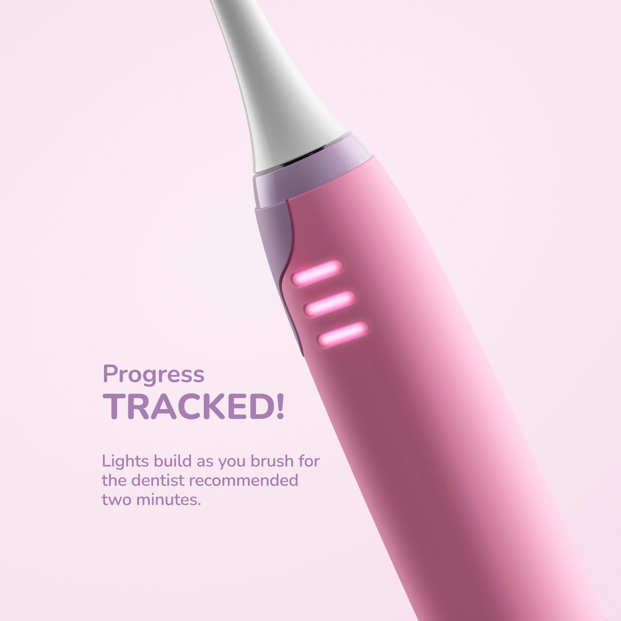 The progress tracker uses audio and haptic feedback, along with progress lights, to guide better brushing. Every 30 seconds a new light illuminates and they all flash in succession after two minutes to indicate that the recommended brushing time is complete.